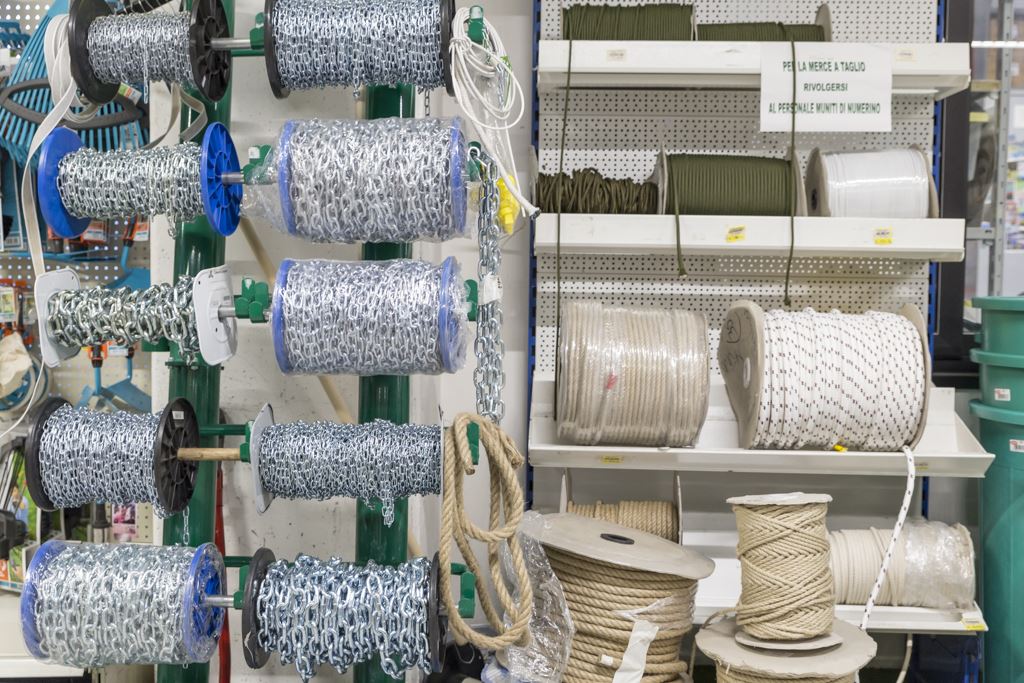 Vendiamo anche catene genovesi, corde e trecce in polietilene, in canapa, elastiche (al metro e al kilo), rocchetti di spago e di fil di ferro.